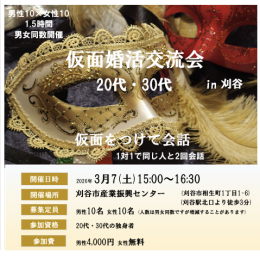 開催日:2026年03月07日(土) 名古屋市内尾張知多西三河東三河その他 男性:20代前半~30代後半 女性:20代前半~30代後半