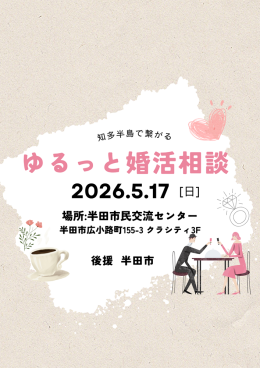 参加資格:①独身男性30才~45才、独身女性26才~40才のご本人②左記のお子様をお持ちの親御様※親子での参加も可能です。③知多地域、西三河地域、名古屋地域の方④男性は、年収400万円以上の方