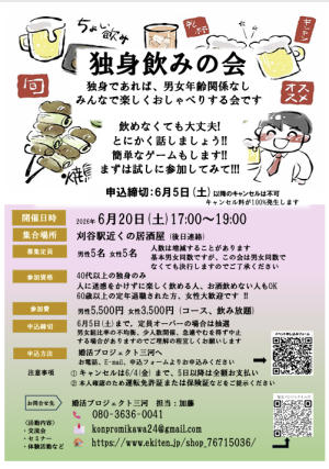 独身飲みの会 (40~60代位) (主催:婚活プロジェクト三河)