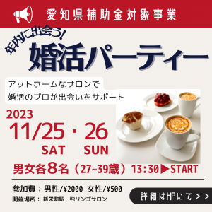愛知県の民間婚活イベント事業費補助金を活用して、アットホームな婚活パーティーを開催します!