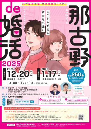 結婚を望まれている方の出会いの場の創出等を目的にした、名古屋市主催大規模婚活イベント「那古野de婚活2025」を開催します。