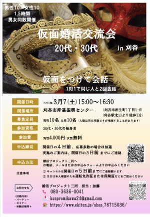 仮面婚活交流会 (30代・40代) (主催:婚活プロジェクト三河)