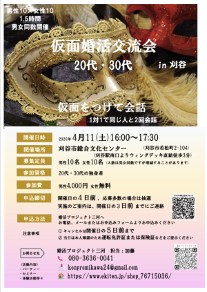仮面婚活交流会 (20代・30代) (主催:婚活プロジェクト三河)