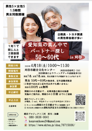 愛知県の真ん中でパートナー探し (50代・60代) (主催:婚活プロジェクト三河)