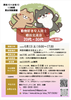 動物好きな人の婚活交流会 (20代・30代) (主催:婚活プロジェクト三河)