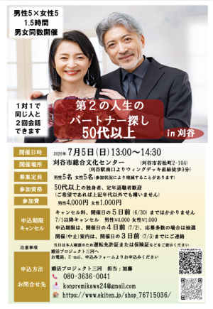 第2の人生のパートナー探し (50代・60代) (主催:婚活プロジェクト三河)