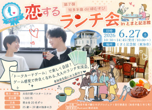 | 内容 | 管理栄養士監修の“健康美食”で楽しいランチ会を開催♪ グループ交流だけでなく、お一人ずつと丁寧に向き合える「1対1トークタイム」も行いますので、自分らしいペースでお相手との会話を楽しめます。 【当日の流れ】 ①受付とバス移動 太⽥川駅バスターミナルにて受付を行います。 お車でお越しの方は、太田川駅東公共駐車場をご利用ください。 受付後、バスにて「とまと記念館」へ向かいます。 ※受付場所の詳細は後日メールでご案内します。 ※「とまと記念館」への直接の駐車は、都合上ご利用いただけませんのでご了承ください。 ②東海市特産トマトジュースで乾杯♡ お食事は、管理栄養士監修の“健康美食”。 前菜やスープとともに、人気のハンバーグランチをご用意しました。 心もお腹も満たされるランチタイムをお楽しみください。 ③価値観、まるわかり!?カードゲーム☆ 「どちらを選ぶ?」といった気軽な2択の質問や、サイコロで話題が決まるトークタイム♪ 笑ったり、共感したりしながら、お互いの考え方や人柄も自然と見えてきます。 楽しみながら距離が縮まる時間をお過ごしください。 ④グループトークの中で、1対1トークもあり♪ ランチタイムやカードトークを通じて、参加されているすべての異性の方と交流できるよう、順次グループチェンジを行います。 各グループでは、まずは「1対1」の自己紹介からスタート! グループ交流ではわいわい楽しみながら、1対1でもしっかりお話しできるので、自然と会話が弾み、距離もぐっと縮まります。 ⑤閉会 最後に、イベントについてのアンケートにご協力いただき、東海市内の店舗の「お菓子」をプレゼントいたします! 楽しかったひとときを終え、バスで太⽥川駅バスターミナルへ移動し、解散となります。 皆さんの素敵な出会いの機会となることを心から願っています♪ ・連絡先交換について 連絡先の交換は、お互いが「この方ともっと話してみたいな」「連絡を取り合いたいな」と感じた方同士のみ交換いただけますので、安心してイベントを楽しんでいただけます。 ご自身のペースで素敵な出会いを見つけてくださいね。 ※ハンバーグランチ付き、東海市内の店舗の「お菓子」をプレゼント ※当日のスケジュールは予告なく変更になる場合がございます。 |