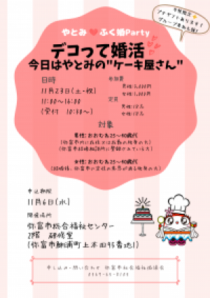 【女性のみ募集】やとみ♡ ふく婚Party デコって婚活~今日はやとみの”ケーキ屋さん”~ (主催:社会福祉法人弥富市社会福祉協議会)